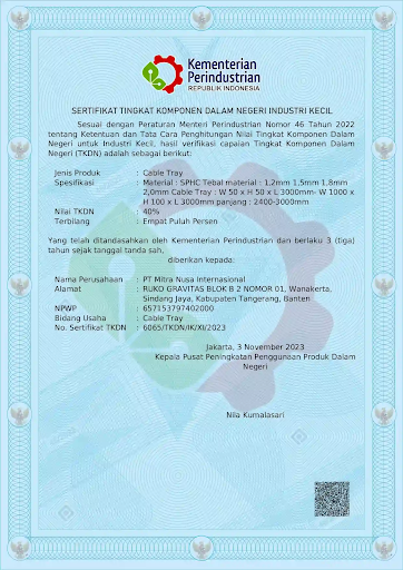 Sertifikat TKDN Kabel Tray